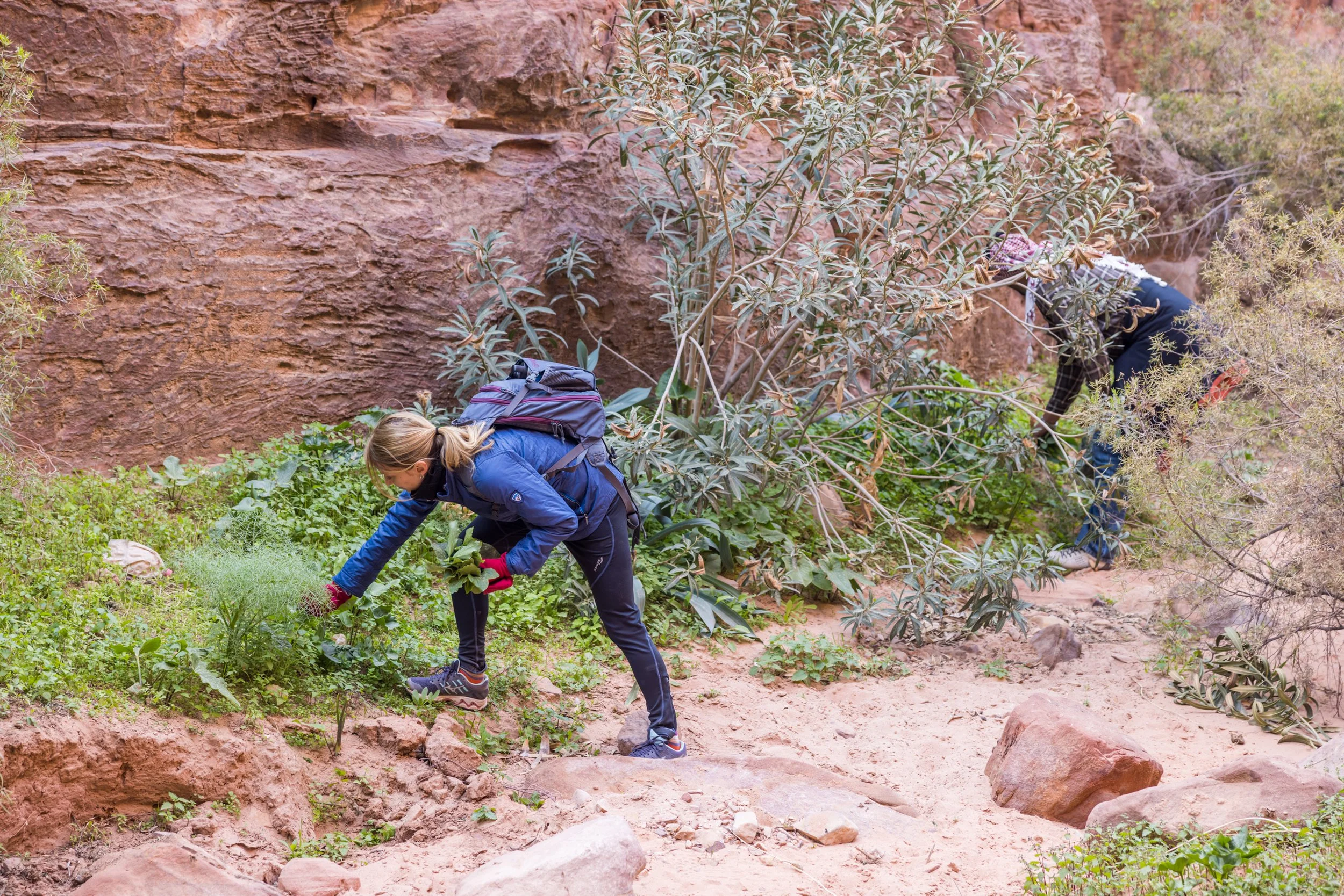 Foraging for our guide’s favorite wild herbs in Jordan. Photo Credit: Hiep Lee