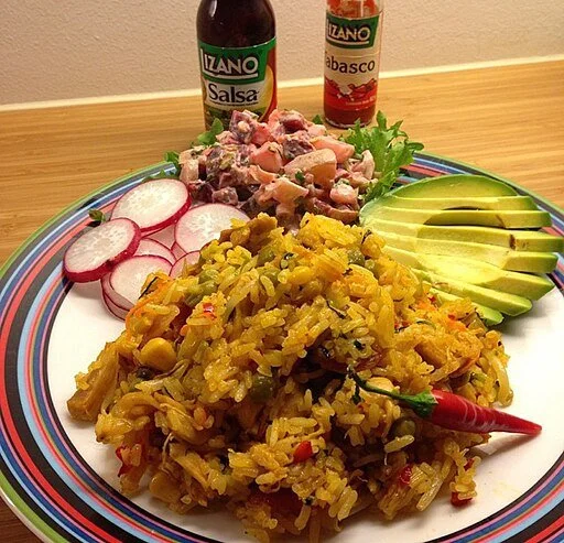 Arroz con Pollo, or rice with chicken, is a comforting and aromatic dish that showcases the skillful blending of spices in Costa Rican cuisine. This hearty one-pot meal reflects the country's culinary heritage, blending influences from Spanish, Indigenous, and African traditions. The dish typically begins with chicken pieces marinated in garlic, lime juice, and cilantro, then sautéed with bell peppers, onions, and carrots to create a savory base. The rice, cooked in a broth seasoned with cumin, oregano, and annatto, absorbs the essence of the chicken and vegetables, resulting in a dish that is both comforting and satisfying.