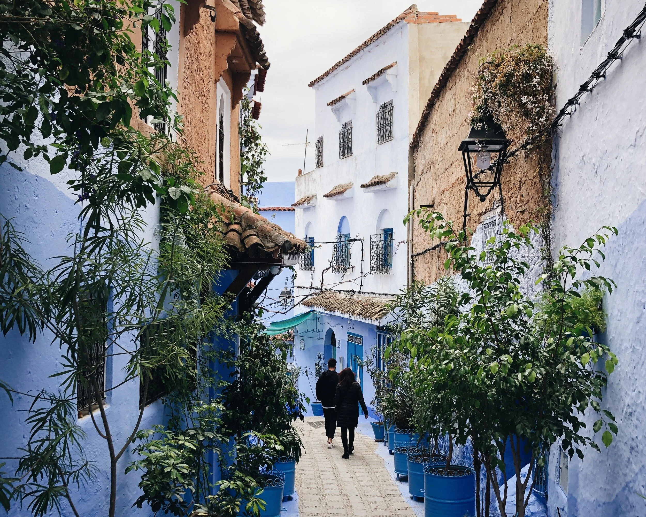 Exploring the streets of Chefchaouen, Morocco. Photo credit: Una Simone